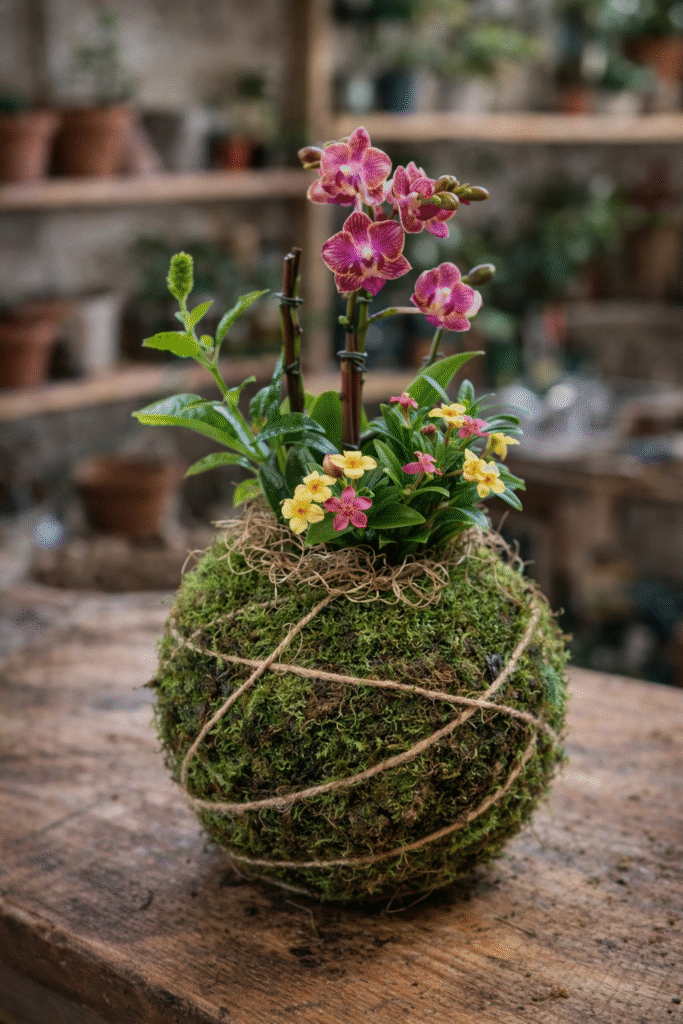 La kokedama es una técnica de origen japonés que consiste en cultivar una planta en una esfera de sustrato recubierta de musgo, en lugar de utilizar una maceta tradicional. Su nombre significa literalmente “bola de musgo” y se ha convertido en una de las formas más delicadas y decorativas de incorporar la naturaleza en interiores.